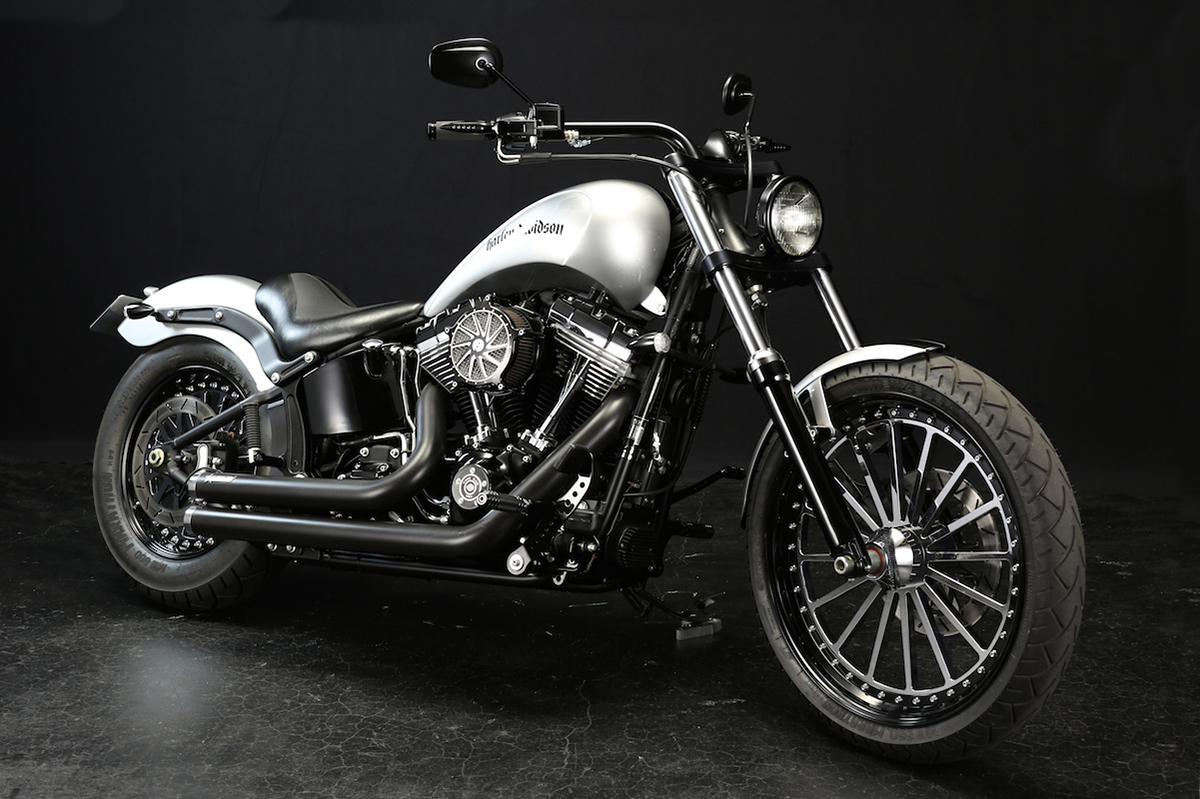新車の2011年 TwinCam Softail Black Lineをベースに弊社にて製作。Big Machine社製アルミ・ビレットホィール、3Dビレット・ヘッドライト、RSD製エアークリーナー、FREEDOMエキゾースト装着、ドイツ: RBS社製ハイエンド・ウィンカー等のカスタムパーツを多々使用して製作を致しております。またガソリンタンク、ハンドルバーは弊社によりますワンオフ・プロダクトです。車検も平成27年11月までありますので、名義変更のみで今直ぐお乗り戴くことが可能!! まさにオススメの一台です!!