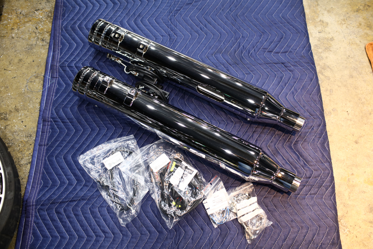 2016年式のロードキングに取り付けた時の写真です。KessTechマフラーには、音量調整用のフラップバルブを自動で開閉させるモードと、任意で開閉させるモードの2種類のシステムが搭載されております。またそのサウンドは、ジェントルな音量、且つ腹に響く重低音。オートバイのエキゾースト・サウンドに関しては、様々な規制が厳しくなっている現状に即しつつも、最大限のパフォーマンスを発揮する唯一無ニのマフラーシステムです!!